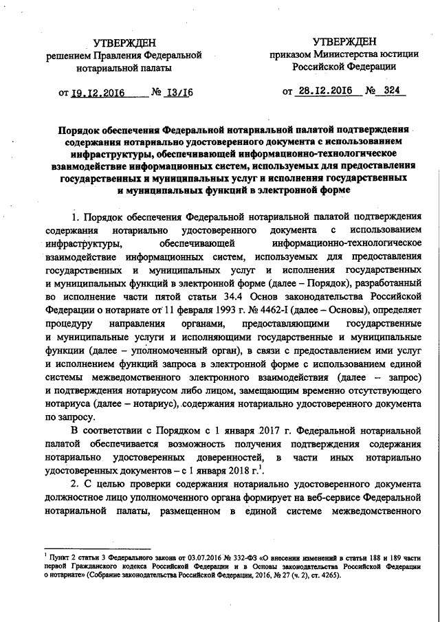 (вместе с ПОРЯДКОМ, утв. Решением Правления Федеральной нотариальной палаты от 19.12.2016 N 13/16, Приказом Минюста РФ от 28.12.2016 N 324) (Зарегистрировано в Минюсте РФ 30.12.2016 N 45074)