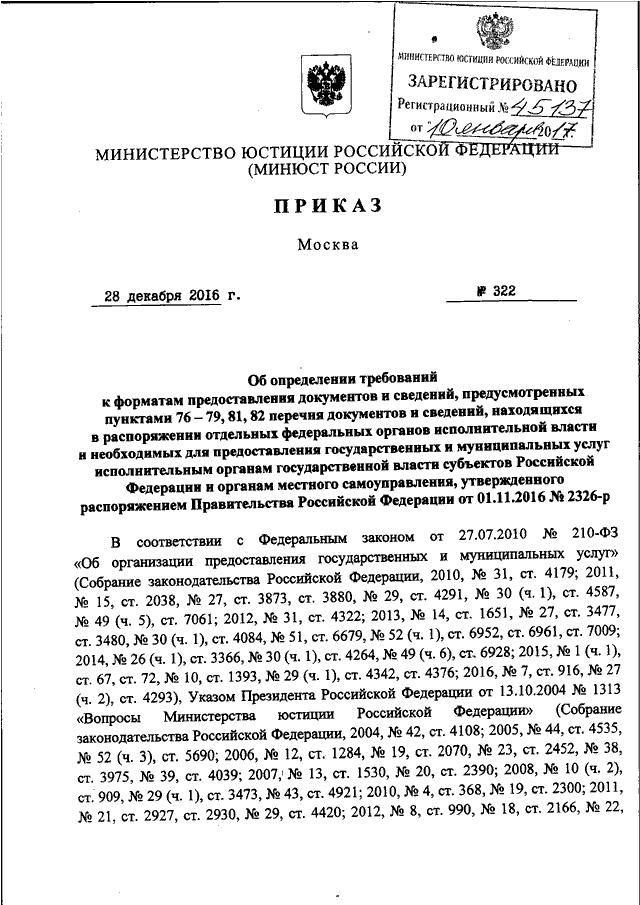 ПРИКАЗ Минюста РФ от 28.12.2016 N 322