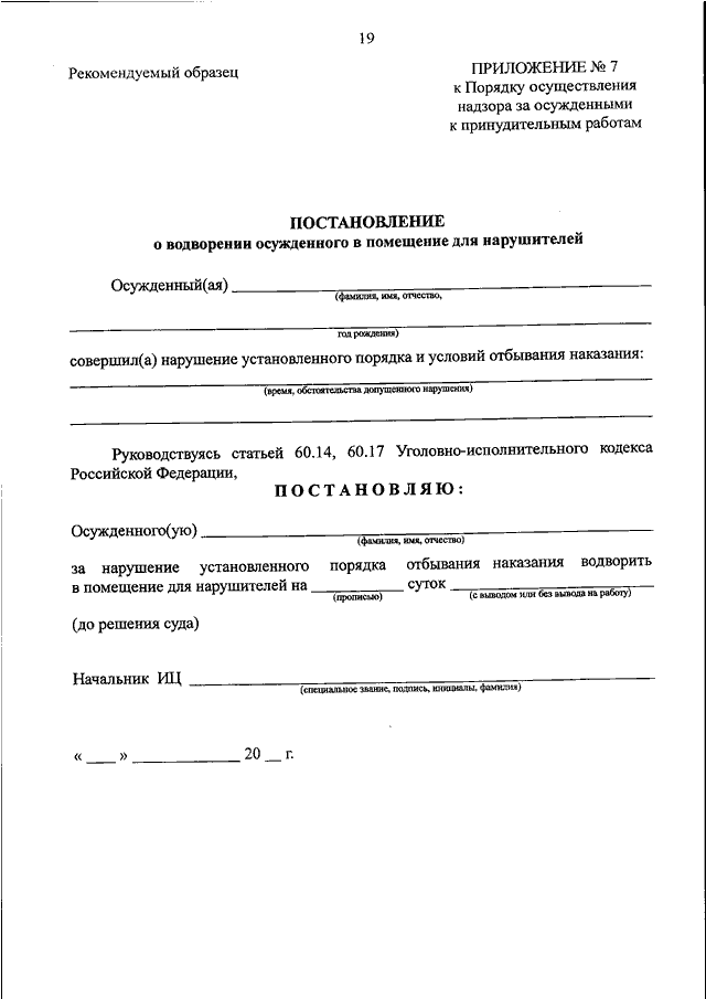 "ОБ УТВЕРЖДЕНИИ ПОРЯДКА ОСУЩЕСТВЛЕНИЯ НАДЗОРА ЗА ОСУЖДЕННЫМИ К ПРИНУДИТЕЛЬНЫМ РАБОТАМ"