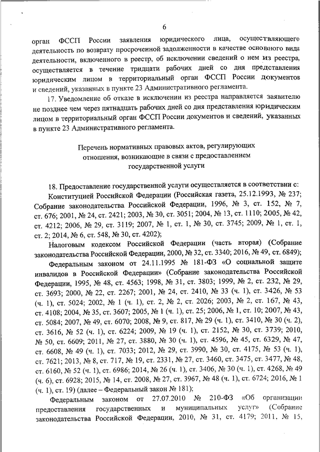 "ОБ УТВЕРЖДЕНИИ АДМИНИСТРАТИВНОГО РЕГЛАМЕНТА ПРЕДОСТАВЛЕНИЯ ФЕДЕРАЛЬНОЙ СЛУЖБОЙ СУДЕБНЫХ ПРИСТАВОВ ГОСУДАРСТВЕННОЙ УСЛУГИ ПО ВКЛЮЧЕНИЮ СВЕДЕНИЙ О ЮРИДИЧЕСКОМ ЛИЦЕ В ГОСУДАРСТВЕННЫЙ РЕЕСТР ЮРИДИЧЕСКИХ ЛИЦ, ОСУЩЕСТВЛЯЮЩИХ ДЕЯТЕЛЬНОСТЬ ПО ВОЗВРАТУ ПРОСРОЧЕННОЙ ЗАДОЛЖЕННОСТИ В КАЧЕСТВЕ ОСНОВНОГО ВИДА ДЕЯТЕЛЬНОСТИ"