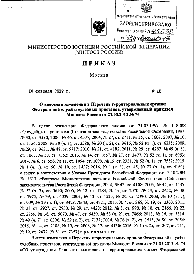 ПРИКАЗ Минюста РФ от 10.02.2017 N 12
