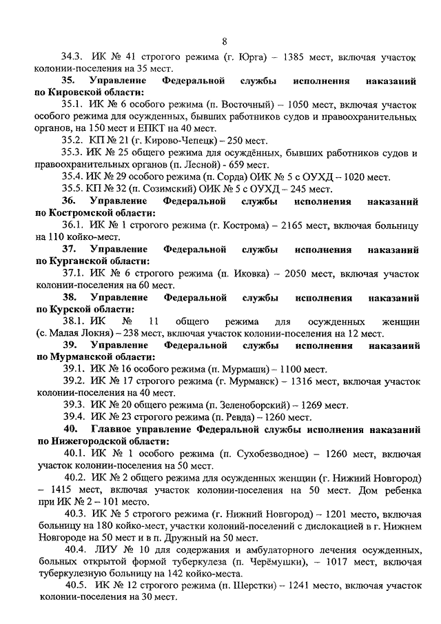 "ОБ ИЗМЕНЕНИИ ВИДА РЕЖИМА И ЛИМИТОВ НАПОЛНЕНИЯ ИСПРАВИТЕЛЬНЫХ УЧРЕЖДЕНИЙ, ЛЕЧЕБНЫХ ИСПРАВИТЕЛЬНЫХ И ЛЕЧЕБНО - ПРОФИЛАКТИЧЕСКИХ УЧРЕЖДЕНИЙ, СОЗДАНИИ И ЛИКВИДАЦИИ В ИСПРАВИТЕЛЬНЫХ КОЛОНИЯХ, ЛЕЧЕБНЫХ ИСПРАВИТЕЛЬНЫХ И ЛЕЧЕБНО - ПРОФИЛАКТИЧЕСКИХ УЧРЕЖДЕНИЯХ ИЗОЛИРОВАННЫХ УЧАСТКОВ С РАЗЛИЧНЫМИ ВИДАМИ РЕЖИМА"