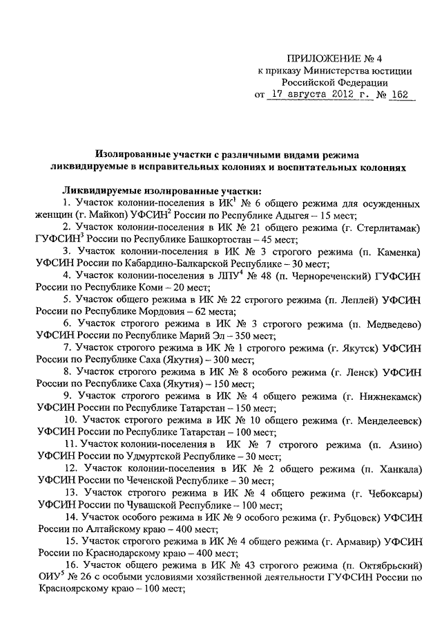 ПРИКАЗ Минюста РФ от 17.08.2012 N 162