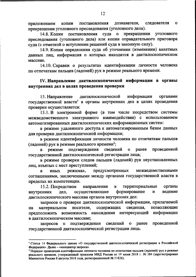 "ОБ УТВЕРЖДЕНИИ ПОРЯДКА ФОРМИРОВАНИЯ НАПРАВЛЯЕМОЙ В ОРГАНЫ ВНУТРЕННИХ ДЕЛ ДАКТИЛОСКОПИЧЕСКОЙ ИНФОРМАЦИИ"