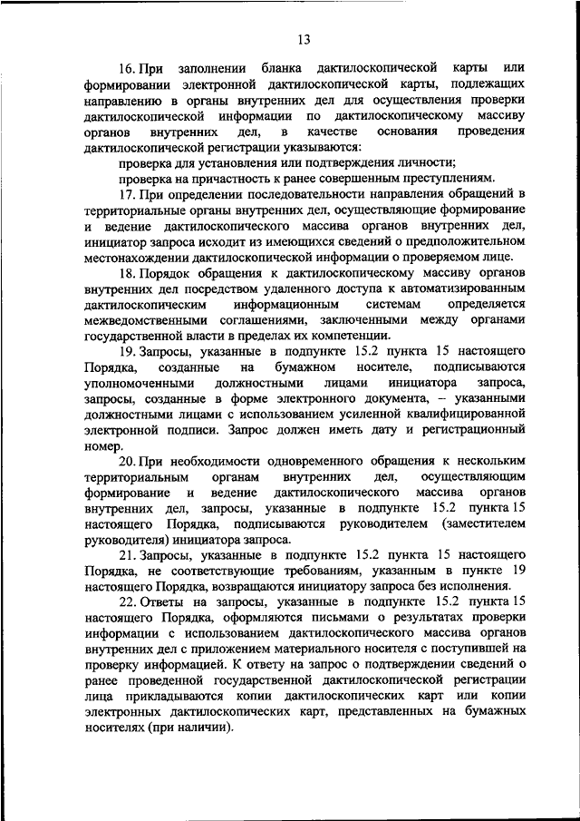 "ОБ УТВЕРЖДЕНИИ ПОРЯДКА ФОРМИРОВАНИЯ НАПРАВЛЯЕМОЙ В ОРГАНЫ ВНУТРЕННИХ ДЕЛ ДАКТИЛОСКОПИЧЕСКОЙ ИНФОРМАЦИИ"