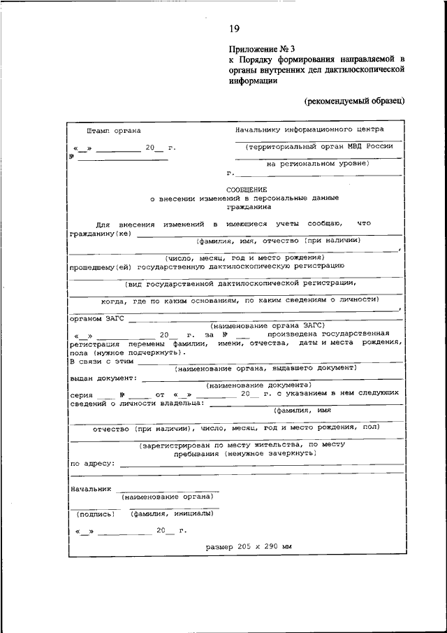 "ОБ УТВЕРЖДЕНИИ ПОРЯДКА ФОРМИРОВАНИЯ НАПРАВЛЯЕМОЙ В ОРГАНЫ ВНУТРЕННИХ ДЕЛ ДАКТИЛОСКОПИЧЕСКОЙ ИНФОРМАЦИИ"