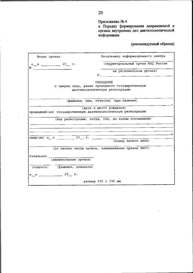 "ОБ УТВЕРЖДЕНИИ ПОРЯДКА ФОРМИРОВАНИЯ НАПРАВЛЯЕМОЙ В ОРГАНЫ ВНУТРЕННИХ ДЕЛ ДАКТИЛОСКОПИЧЕСКОЙ ИНФОРМАЦИИ"