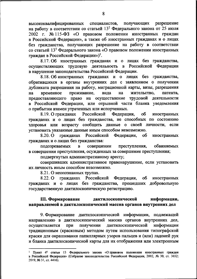 "ОБ УТВЕРЖДЕНИИ ПОРЯДКА ФОРМИРОВАНИЯ НАПРАВЛЯЕМОЙ В ОРГАНЫ ВНУТРЕННИХ ДЕЛ ДАКТИЛОСКОПИЧЕСКОЙ ИНФОРМАЦИИ"