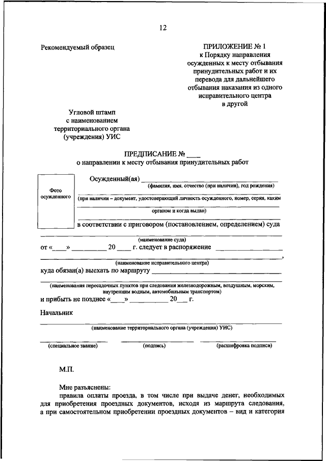 "ОБ УТВЕРЖДЕНИИ ПОРЯДКА НАПРАВЛЕНИЯ ОСУЖДЕННЫХ К МЕСТУ ОТБЫВАНИЯ ПРИНУДИТЕЛЬНЫХ РАБОТ И ИХ ПЕРЕВОДА ДЛЯ ДАЛЬНЕЙШЕГО ОТБЫВАНИЯ НАКАЗАНИЯ ИЗ ОДНОГО ИСПРАВИТЕЛЬНОГО ЦЕНТРА В ДРУГОЙ"