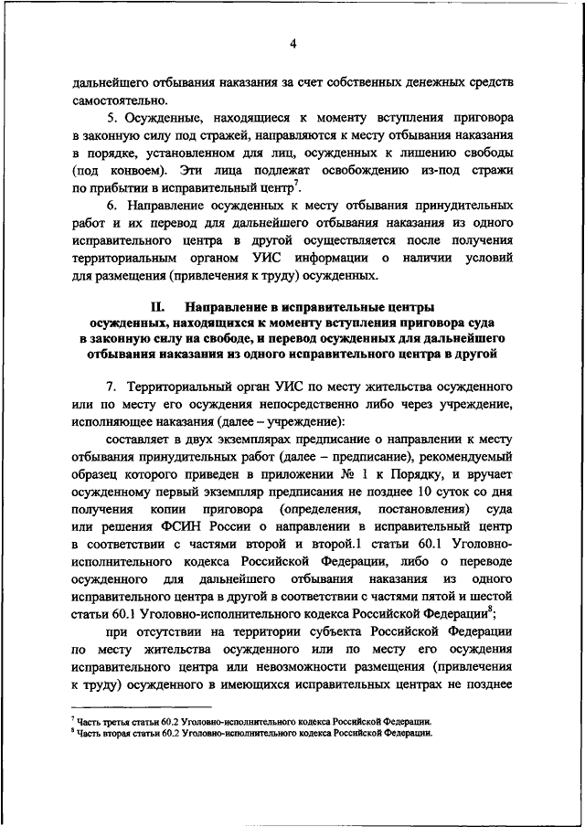 "ОБ УТВЕРЖДЕНИИ ПОРЯДКА НАПРАВЛЕНИЯ ОСУЖДЕННЫХ К МЕСТУ ОТБЫВАНИЯ ПРИНУДИТЕЛЬНЫХ РАБОТ И ИХ ПЕРЕВОДА ДЛЯ ДАЛЬНЕЙШЕГО ОТБЫВАНИЯ НАКАЗАНИЯ ИЗ ОДНОГО ИСПРАВИТЕЛЬНОГО ЦЕНТРА В ДРУГОЙ"