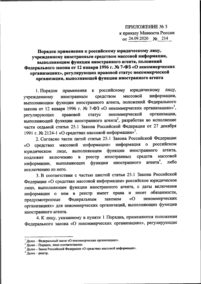 ПРИКАЗ Минюста РФ от 24.09.2020 N 214