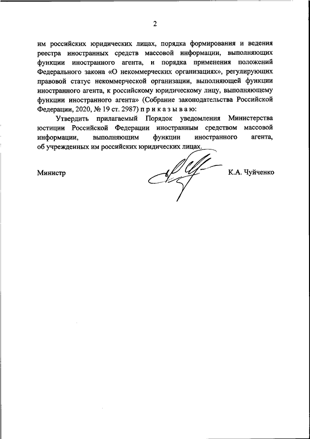 "ОБ УТВЕРЖДЕНИИ ПОРЯДКА УВЕДОМЛЕНИЯ МИНИСТЕРСТВА ЮСТИЦИИ РОССИЙСКОЙ ФЕДЕРАЦИИ ИНОСТРАННЫМ СРЕДСТВОМ МАССОВОЙ ИНФОРМАЦИИ, ВЫПОЛНЯЮЩИМ ФУНКЦИИ ИНОСТРАННОГО АГЕНТА, ОБ УЧРЕЖДЕННЫХ ИМ РОССИЙСКИХ ЮРИДИЧЕСКИХ ЛИЦАХ"