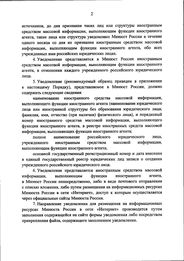 "ОБ УТВЕРЖДЕНИИ ПОРЯДКА УВЕДОМЛЕНИЯ МИНИСТЕРСТВА ЮСТИЦИИ РОССИЙСКОЙ ФЕДЕРАЦИИ ИНОСТРАННЫМ СРЕДСТВОМ МАССОВОЙ ИНФОРМАЦИИ, ВЫПОЛНЯЮЩИМ ФУНКЦИИ ИНОСТРАННОГО АГЕНТА, ОБ УЧРЕЖДЕННЫХ ИМ РОССИЙСКИХ ЮРИДИЧЕСКИХ ЛИЦАХ"