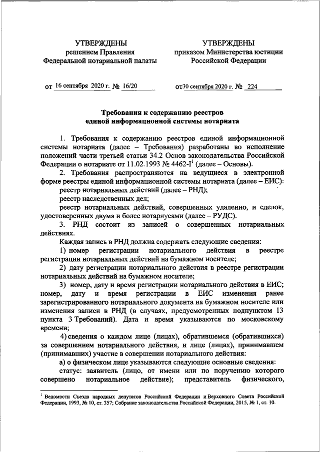 (Зарегистрировано в Минюсте РФ 05.10.2020 N 60208) (вместе с ТРЕБОВАНИЯМИ, утв. РЕШЕНИЕМ Правления Федеральной нотариальной палаты от 16.09.2020 N 16/20)