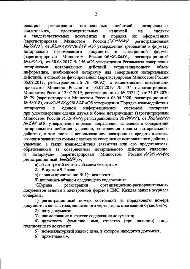 "О ВНЕСЕНИИ ИЗМЕНЕНИЙ В ПРАВИЛА НОТАРИАЛЬНОГО ДЕЛОПРОИЗВОДСТВА, УТВЕРЖДЕННЫЕ ПРИКАЗОМ МИНИСТЕРСТВА ЮСТИЦИИ РОССИЙСКОЙ ФЕДЕРАЦИИ ОТ 16.04.2014 N 78" (Зарегистрировано в Минюсте РФ 05.10.2020 N 60212)