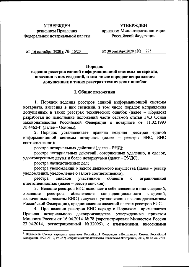 ПРИКАЗ Минюста РФ от 30.09.2020 N 225
