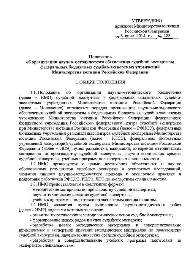 ПРИКАЗ Минюста РФ от 06.06.2014 N 123
