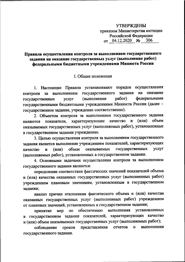 ПРИКАЗ Минюста РФ от 04.12.2020 N 306
