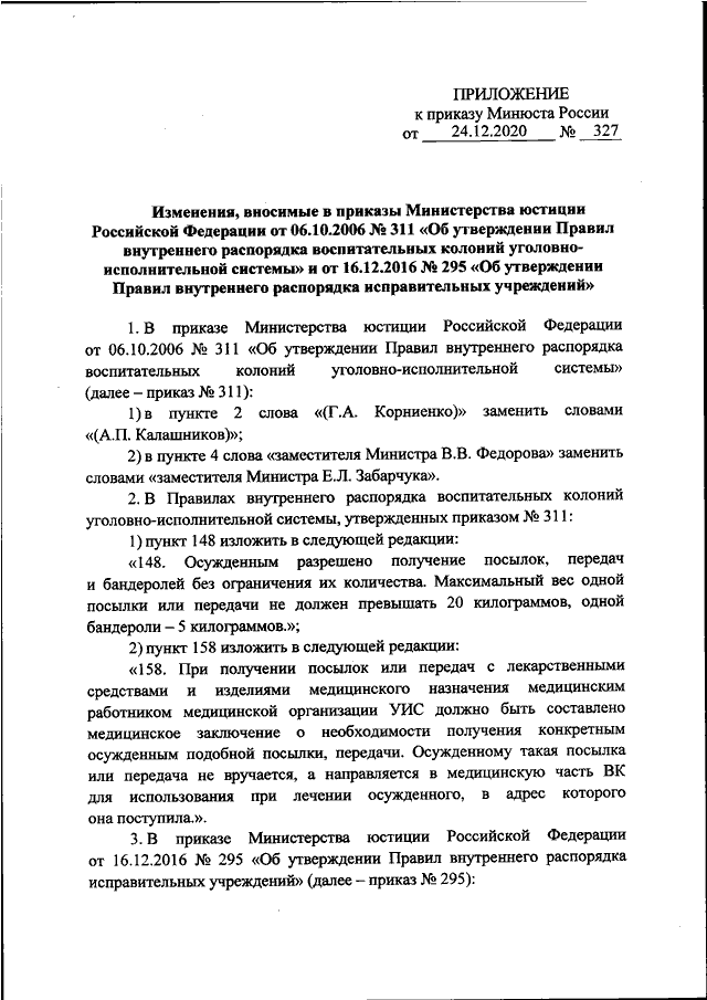 ПРИКАЗ Минюста РФ от 24.12.2020 N 327