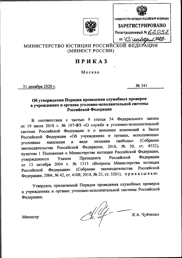 ПРИКАЗ Минюста РФ от 31.12.2020 N 341