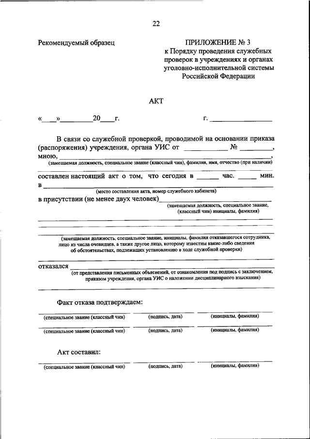 "ОБ УТВЕРЖДЕНИИ ПОРЯДКА ПРОВЕДЕНИЯ СЛУЖЕБНЫХ ПРОВЕРОК В УЧРЕЖДЕНИЯХ И ОРГАНАХ УГОЛОВНО - ИСПОЛНИТЕЛЬНОЙ СИСТЕМЫ РОССИЙСКОЙ ФЕДЕРАЦИИ"