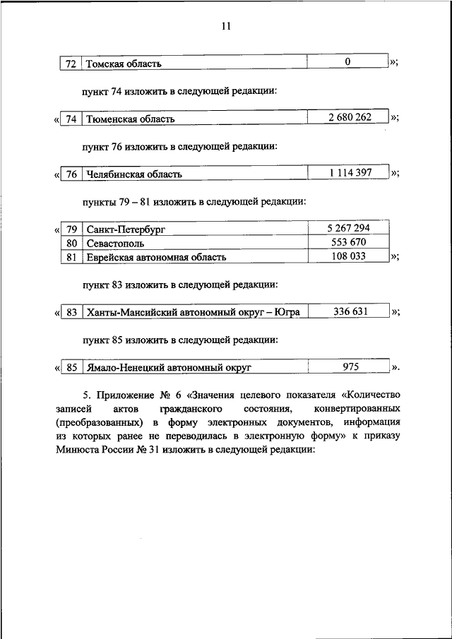 "О ВНЕСЕНИИ ИЗМЕНЕНИЙ В ПРИКАЗ МИНИСТЕРСТВА ЮСТИЦИИ РОССИЙСКОЙ ФЕДЕРАЦИИ ОТ 28.02.2020 N 31 "ОБ УТВЕРЖДЕНИИ ЗНАЧЕНИЙ ЦЕЛЕВЫХ ПОКАЗАТЕЛЕЙ ЭФФЕКТИВНОСТИ ДЕЯТЕЛЬНОСТИ ОРГАНОВ ГОСУДАРСТВЕННОЙ ВЛАСТИ СУБЪЕКТОВ РОССИЙСКОЙ ФЕДЕРАЦИИ И АДМИНИСТРАЦИИ Г. БАЙКОНУРА ПО ОСУЩЕСТВЛЕНИЮ ПЕРЕДАННЫХ ИМ ПОЛНОМОЧИЙ РОССИЙСКОЙ ФЕДЕРАЦИИ НА ГОСУДАРСТВЕННУЮ РЕГИСТРАЦИЮ АКТОВ ГРАЖДАНСКОГО СОСТОЯНИЯ НА 2020 ГОД"