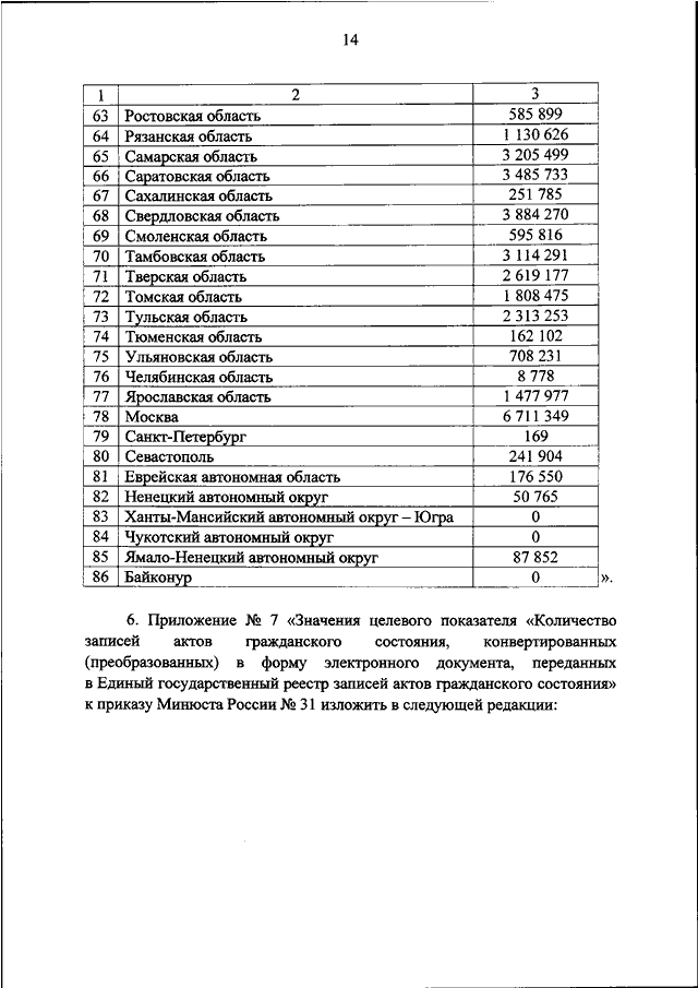 "О ВНЕСЕНИИ ИЗМЕНЕНИЙ В ПРИКАЗ МИНИСТЕРСТВА ЮСТИЦИИ РОССИЙСКОЙ ФЕДЕРАЦИИ ОТ 28.02.2020 N 31 "ОБ УТВЕРЖДЕНИИ ЗНАЧЕНИЙ ЦЕЛЕВЫХ ПОКАЗАТЕЛЕЙ ЭФФЕКТИВНОСТИ ДЕЯТЕЛЬНОСТИ ОРГАНОВ ГОСУДАРСТВЕННОЙ ВЛАСТИ СУБЪЕКТОВ РОССИЙСКОЙ ФЕДЕРАЦИИ И АДМИНИСТРАЦИИ Г. БАЙКОНУРА ПО ОСУЩЕСТВЛЕНИЮ ПЕРЕДАННЫХ ИМ ПОЛНОМОЧИЙ РОССИЙСКОЙ ФЕДЕРАЦИИ НА ГОСУДАРСТВЕННУЮ РЕГИСТРАЦИЮ АКТОВ ГРАЖДАНСКОГО СОСТОЯНИЯ НА 2020 ГОД"