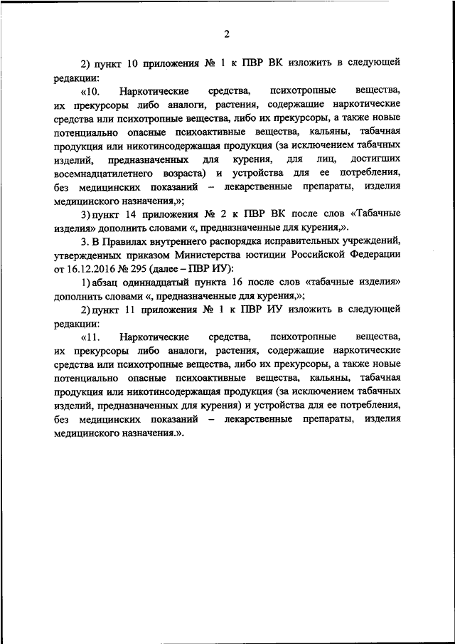 "О ВНЕСЕНИИ ИЗМЕНЕНИЙ В ПРИКАЗЫ МИНИСТЕРСТВА ЮСТИЦИИ РОССИЙСКОЙ ФЕДЕРАЦИИ ОТ 14.10.2005 N 189 "ОБ УТВЕРЖДЕНИИ ПРАВИЛ ВНУТРЕННЕГО РАСПОРЯДКА СЛЕДСТВЕННЫХ ИЗОЛЯТОРОВ УГОЛОВНО - ИСПОЛНИТЕЛЬНОЙ СИСТЕМЫ", ОТ 06.10.2006 N 311 "ОБ УТВЕРЖДЕНИИ ПРАВИЛ ВНУТРЕННЕГО РАСПОРЯДКА ВОСПИТАТЕЛЬНЫХ КОЛОНИЙ УГОЛОВНО - ИСПОЛНИТЕЛЬНОЙ СИСТЕМЫ" И ОТ 16.12.2016 N 295 "ОБ УТВЕРЖДЕНИИ ПРАВИЛ ВНУТРЕННЕГО РАСПОРЯДКА ИСПРАВИТЕЛЬНЫХ УЧРЕЖДЕНИЙ"