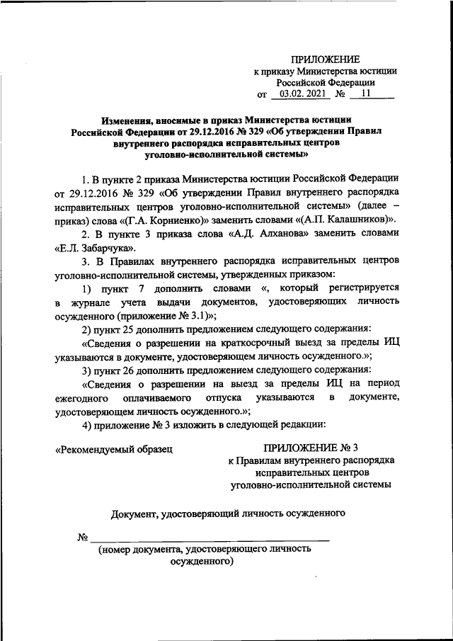 ПРИКАЗ Минюста РФ от 03.02.2021 N 11