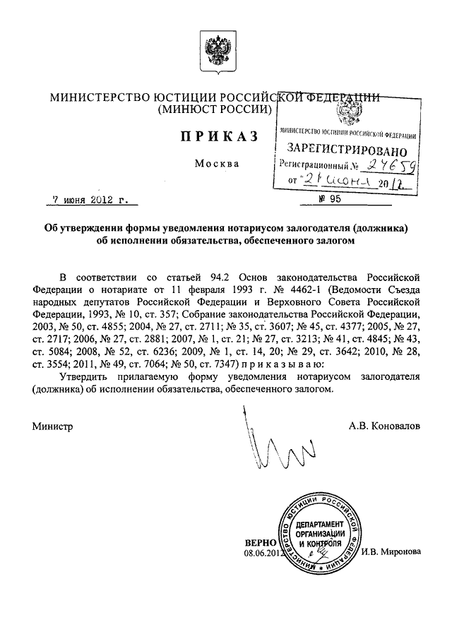 ПРИКАЗ Минюста РФ от 07.06.2012 N 95