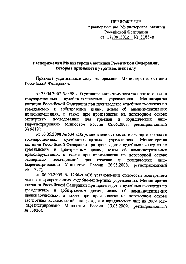 РАСПОРЯЖЕНИЕ Минюста РФ от 14.06.2012 N 1153-р