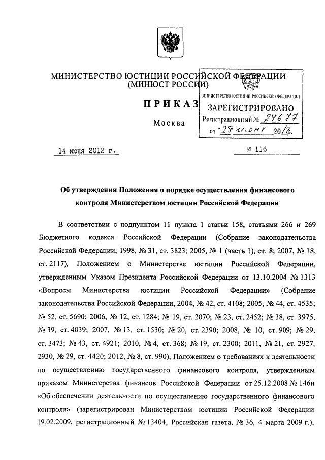 ПРИКАЗ Минюста РФ от 14.06.2012 N 116