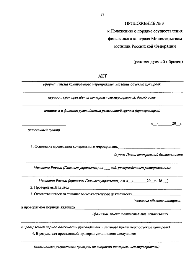 "ОБ УТВЕРЖДЕНИИ ПОЛОЖЕНИЯ О ПОРЯДКЕ ОСУЩЕСТВЛЕНИЯ ФИНАНСОВОГО КОНТРОЛЯ МИНИСТЕРСТВОМ ЮСТИЦИИ РОССИЙСКОЙ ФЕДЕРАЦИИ"