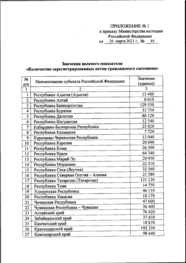 ПРИКАЗ Минюста РФ от 26.03.2021 N 44