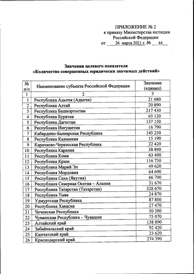 ПРИКАЗ Минюста РФ от 26.03.2021 N 44