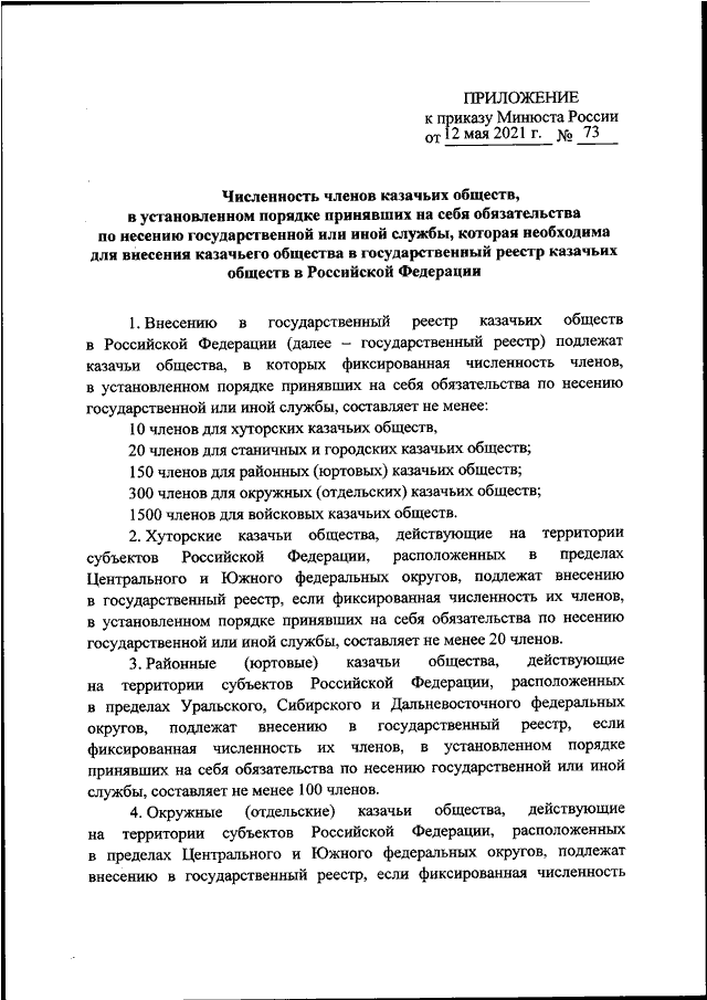 ПРИКАЗ Минюста РФ от 12.05.2021 N 73
