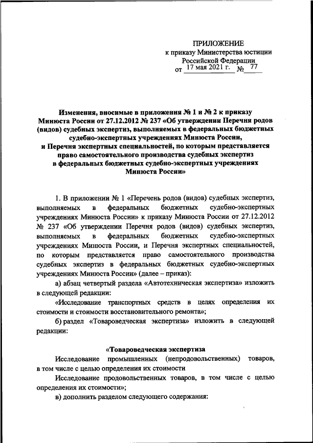 ПРИКАЗ Минюста РФ от 17.05.2021 N 77