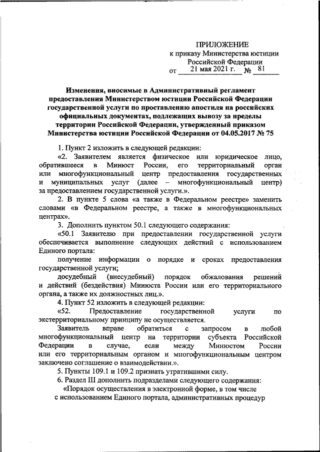 ПРИКАЗ Минюста РФ от 21.05.2021 N 81