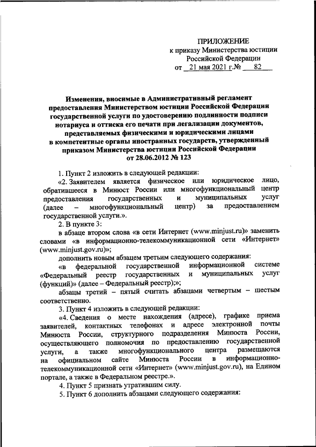ПРИКАЗ Минюста РФ от 21.05.2021 N 82