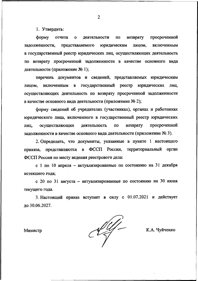 "ОБ УТВЕРЖДЕНИИ ФОРМЫ ОТЧЕТА О ДЕЯТЕЛЬНОСТИ ПО ВОЗВРАТУ ПРОСРОЧЕННОЙ ЗАДОЛЖЕННОСТИ, ПЕРЕЧНЯ ДОКУМЕНТОВ И СВЕДЕНИЙ, ПРЕДСТАВЛЯЕМЫХ ЮРИДИЧЕСКИМ ЛИЦОМ, ВКЛЮЧЕННЫМ В ГОСУДАРСТВЕННЫЙ РЕЕСТР ЮРИДИЧЕСКИХ ЛИЦ, ОСУЩЕСТВЛЯЮЩИХ ДЕЯТЕЛЬНОСТЬ ПО ВОЗВРАТУ ПРОСРОЧЕННОЙ ЗАДОЛЖЕННОСТИ В КАЧЕСТВЕ ОСНОВНОГО ВИДА ДЕЯТЕЛЬНОСТИ, А ТАКЖЕ СРОКОВ И ПЕРИОДИЧНОСТИ ИХ ПРЕДСТАВЛЕНИЯ"