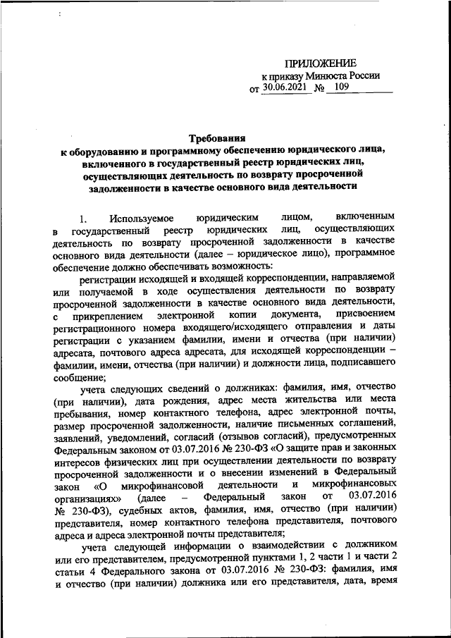 ПРИКАЗ Минюста РФ от 30.06.2021 N 109