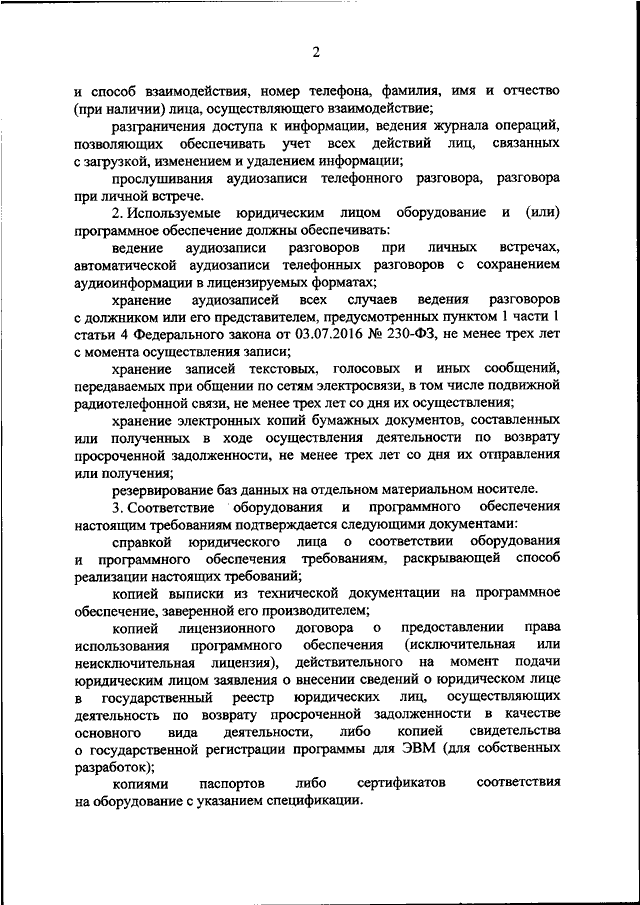 "ОБ УТВЕРЖДЕНИИ ТРЕБОВАНИЙ К ОБОРУДОВАНИЮ И ПРОГРАММНОМУ ОБЕСПЕЧЕНИЮ ЮРИДИЧЕСКОГО ЛИЦА, ВКЛЮЧЕННОГО В ГОСУДАРСТВЕННЫЙ РЕЕСТР ЮРИДИЧЕСКИХ ЛИЦ, ОСУЩЕСТВЛЯЮЩИХ ДЕЯТЕЛЬНОСТЬ ПО ВОЗВРАТУ ПРОСРОЧЕННОЙ ЗАДОЛЖЕННОСТИ В КАЧЕСТВЕ ОСНОВНОГО ВИДА ДЕЯТЕЛЬНОСТИ"