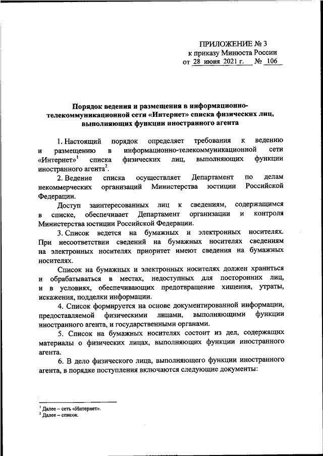 ПРИКАЗ Минюста РФ от 28.06.2021 N 106