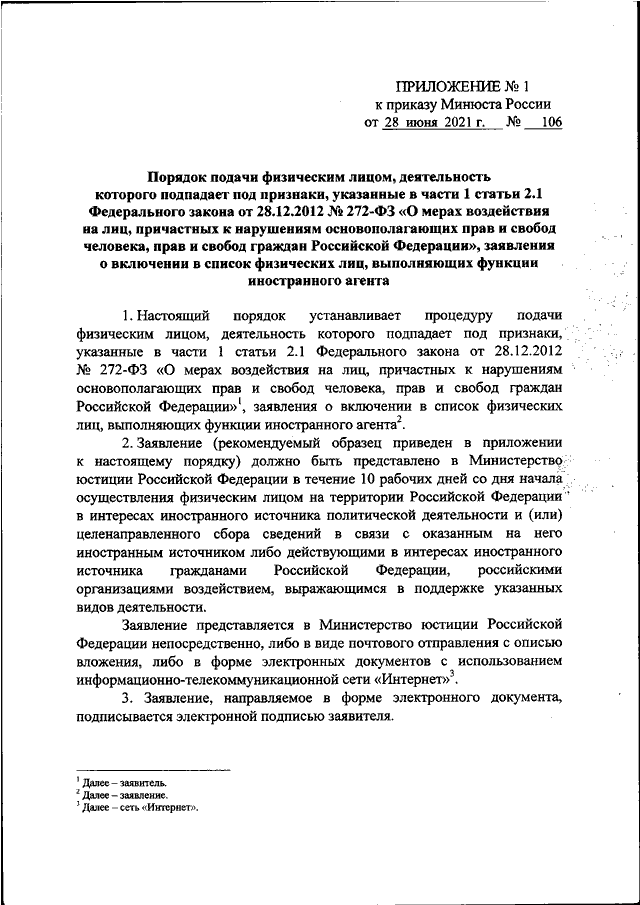 ПРИКАЗ Минюста РФ от 28.06.2021 N 106