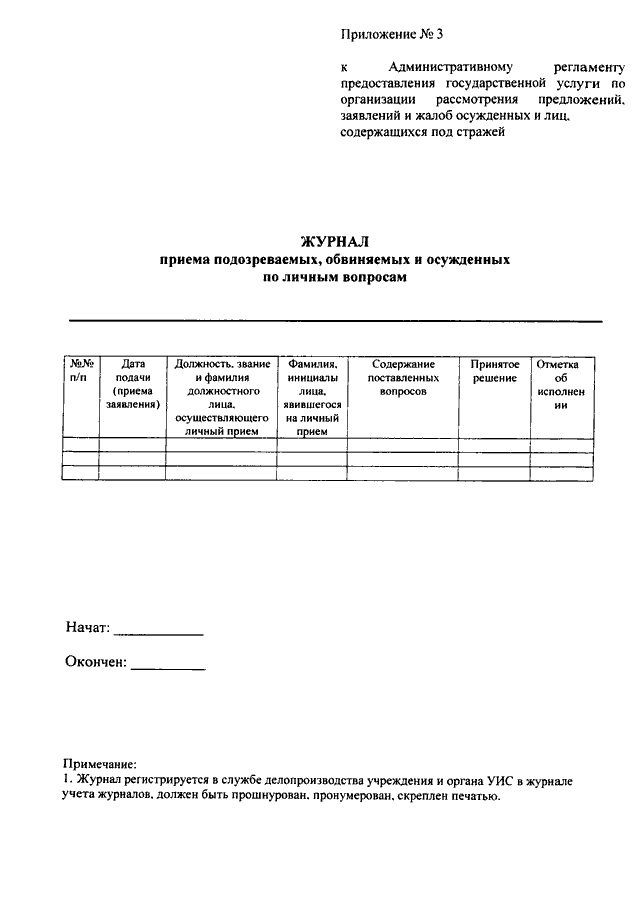 "ОБ УТВЕРЖДЕНИИ АДМИНИСТРАТИВНОГО РЕГЛАМЕНТА ПРЕДОСТАВЛЕНИЯ ГОСУДАРСТВЕННОЙ УСЛУГИ ПО ОРГАНИЗАЦИИ РАССМОТРЕНИЯ ПРЕДЛОЖЕНИЙ, ЗАЯВЛЕНИЙ И ЖАЛОБ ОСУЖДЕННЫХ И ЛИЦ, СОДЕРЖАЩИХСЯ ПОД СТРАЖЕЙ"