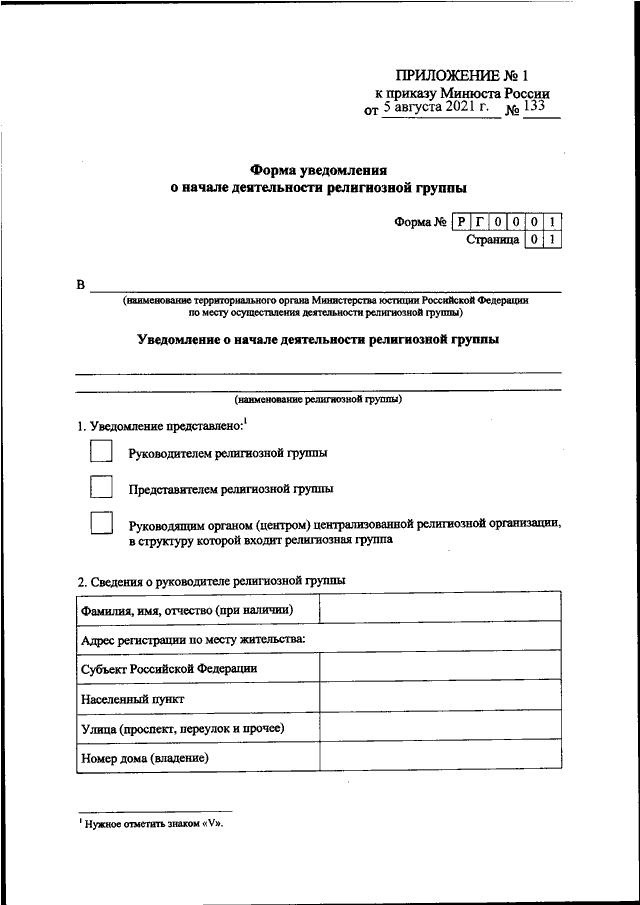 "ОБ УТВЕРЖДЕНИИ ФОРМЫ УВЕДОМЛЕНИЯ О НАЧАЛЕ ДЕЯТЕЛЬНОСТИ РЕЛИГИОЗНОЙ ГРУППЫ И ФОРМЫ УВЕДОМЛЕНИЯ О ПРОДОЛЖЕНИИ ДЕЯТЕЛЬНОСТИ РЕЛИГИОЗНОЙ ГРУППЫ"