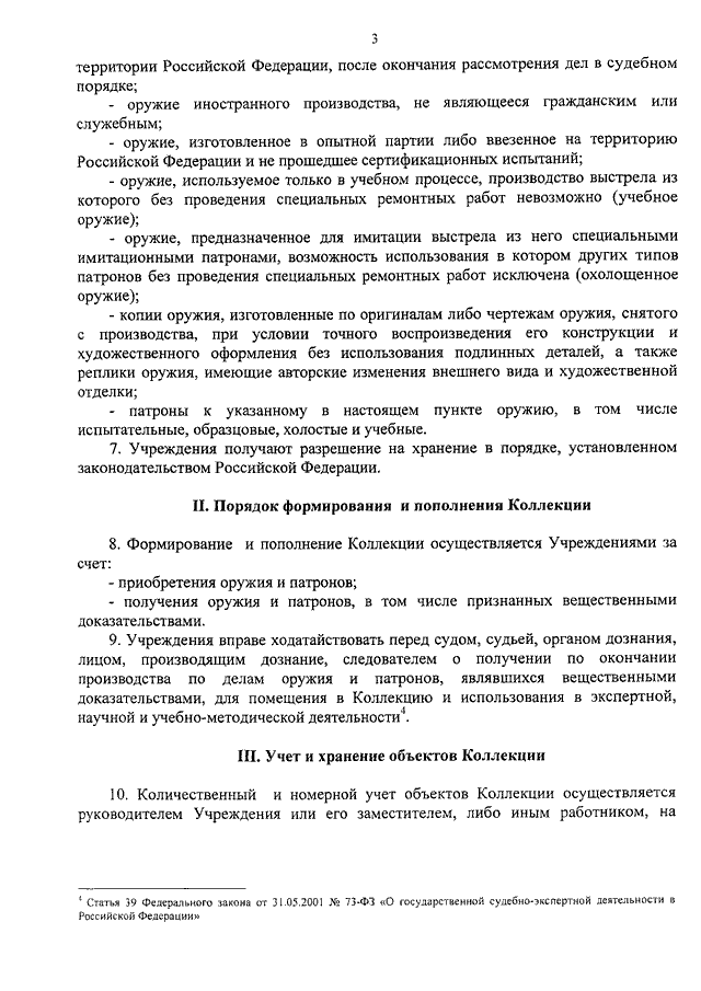 "ОБ УТВЕРЖДЕНИИ ПОРЯДКА ФУНКЦИОНИРОВАНИЯ В ФЕДЕРАЛЬНЫХ БЮДЖЕТНЫХ СУДЕБНО - ЭКСПЕРТНЫХ УЧРЕЖДЕНИЯХ МИНЮСТА РОССИИ КРИМИНАЛИСТИЧЕСКОЙ КОЛЛЕКЦИИ ОРУЖИЯ И ПАТРОНОВ"