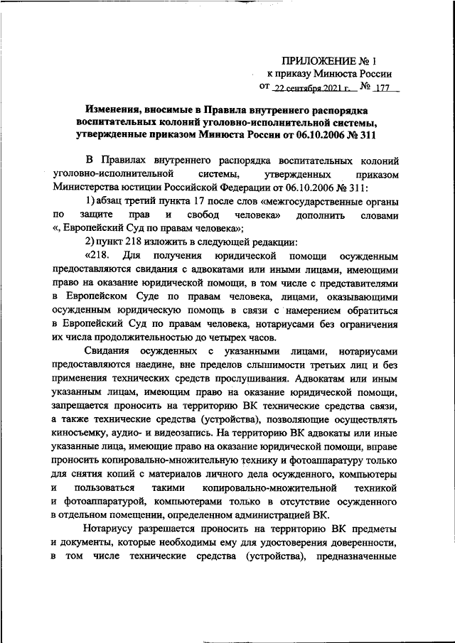 ПРИКАЗ Минюста РФ от 22.09.2021 N 177