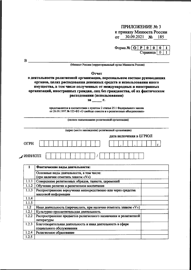 ПРИКАЗ Минюста РФ от 30.09.2021 N 185