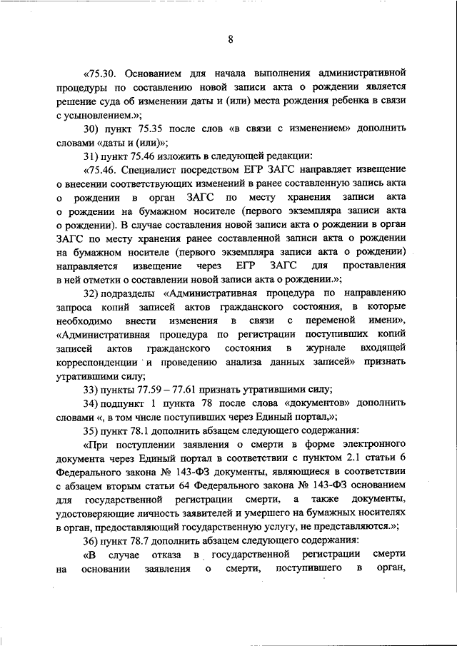 "О ВНЕСЕНИИ ИЗМЕНЕНИЙ В АДМИНИСТРАТИВНЫЙ РЕГЛАМЕНТ ПРЕДОСТАВЛЕНИЯ ГОСУДАРСТВЕННОЙ УСЛУГИ ПО ГОСУДАРСТВЕННОЙ РЕГИСТРАЦИИ АКТОВ ГРАЖДАНСКОГО СОСТОЯНИЯ ОРГАНАМИ, ОСУЩЕСТВЛЯЮЩИМИ ГОСУДАРСТВЕННУЮ РЕГИСТРАЦИЮ АКТОВ ГРАЖДАНСКОГО СОСТОЯНИЯ НА ТЕРРИТОРИИ РОССИЙСКОЙ ФЕДЕРАЦИИ, УТВЕРЖДЕННЫЙ ПРИКАЗОМ МИНЮСТА РОССИИ ОТ 28.12.2018 N 307"